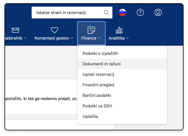 Do računov lahko dostopate preko zavihka Finance → Dokumenti in računi. Račun pa bi vam moral Booking tudi vsak mesec poslati na vaš e-poštni naslov.